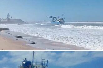 تقرير عاجل: جنوح سفينة بشاطئ المحمدية وسحبها نحو البحر