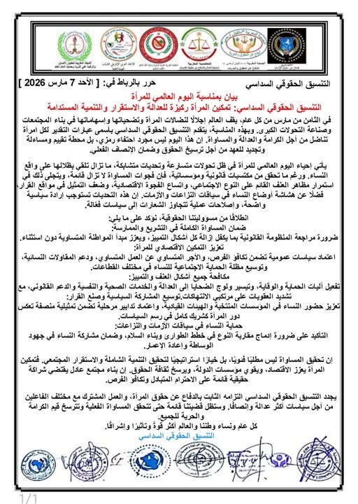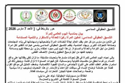 المواطن24 التنسيق الحقوقي السداسي: تمكين المرأة ركيزة للعدالة والاستقرار والتنمية المستدامة في الثامن من مارس من كل عام، يقف العالم…