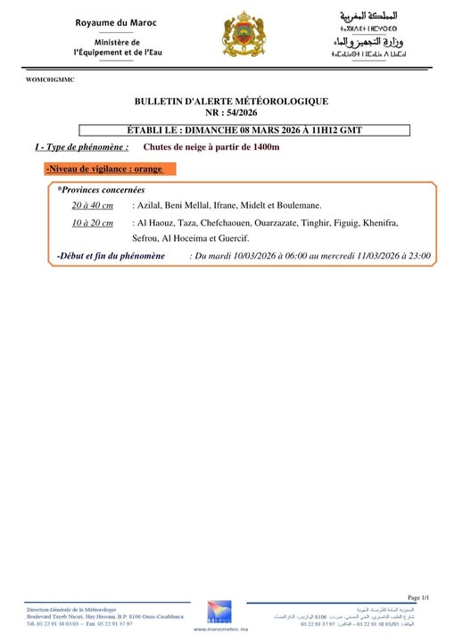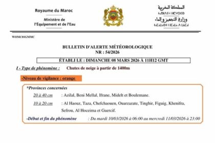 Almouaten24.ma خديجة نشرة إنذارية: تساقطات ثلجية مرتقبة بعدد من مناطق المغرب. أصدرت المديرية العامة للأرصاد الجوية نشرة إنذارية من مستوى…