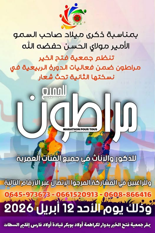 متابعة-زينب ايت بويغولدن تستعد ساكنة إقليم سطات لحدث رياضي مميز، حيث تعود جمعية فتح الخير لتنظيم النسخة الثانية من “ماراطون…