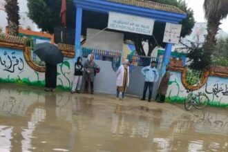 أمطار قصيرة تغرق مدرسة عبد الله الشفشاوني بالقصر الكبير وتثير ذعر الآباء.